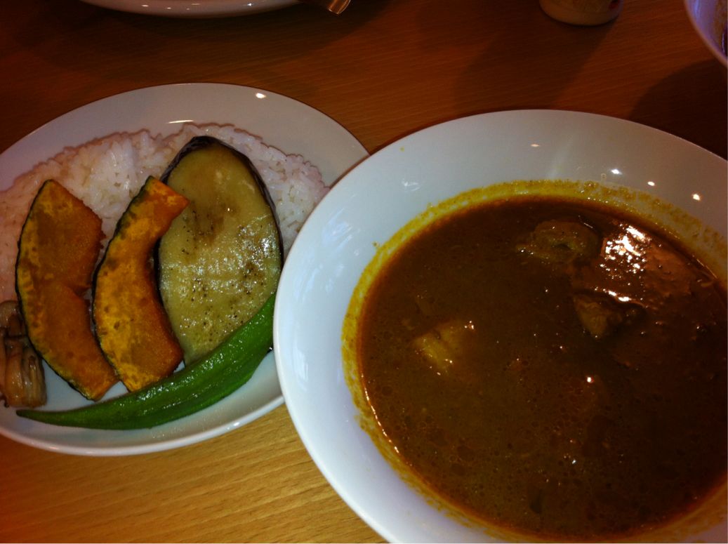 とま博のカレーって食べ続けるとやせるって知ってました? 代謝が上がって、ローカロリーなんで、ダイエットに使う人もいるくらいなんですよ!